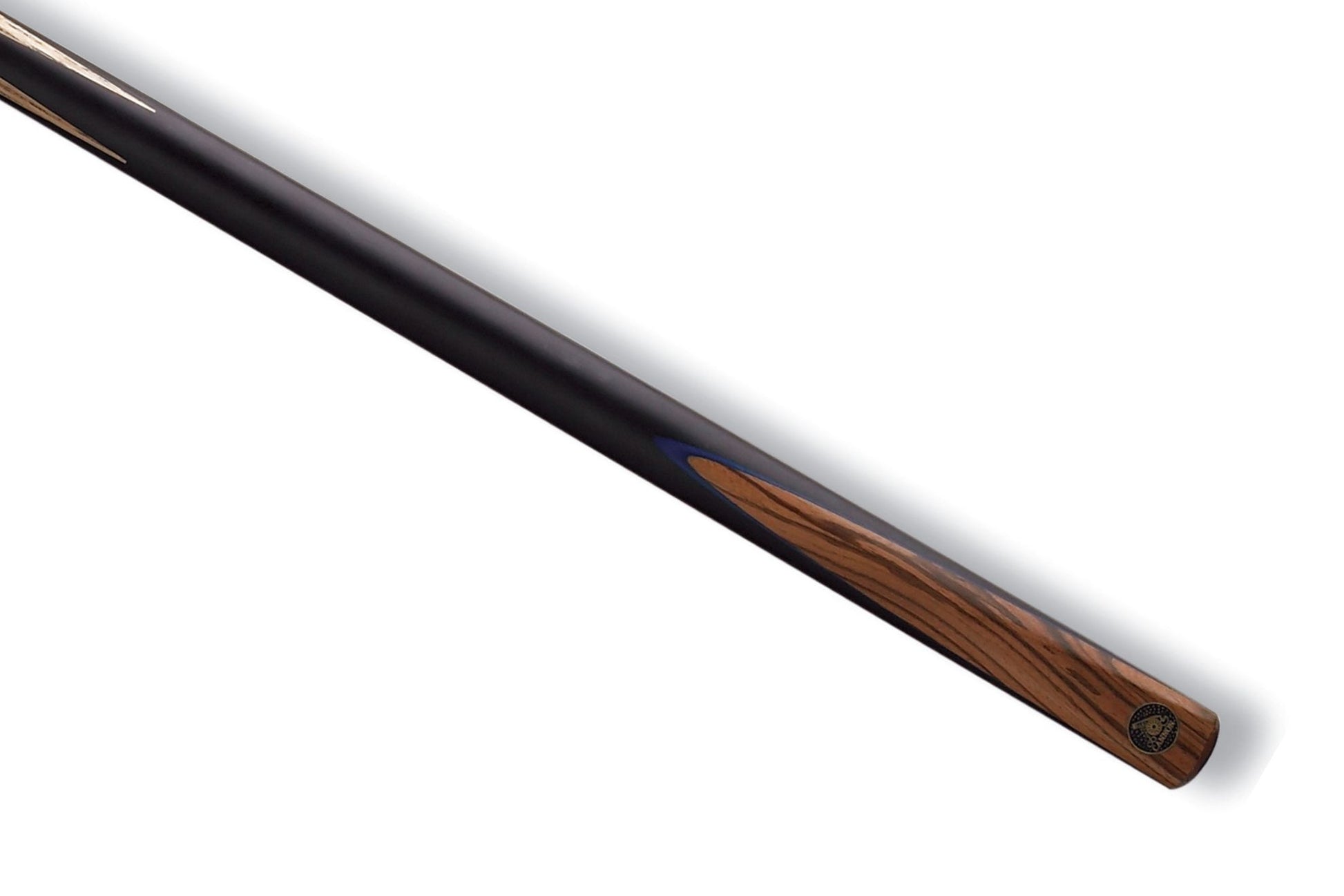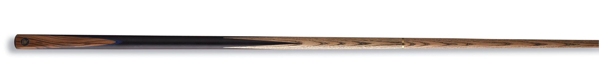 Crafted from quality sports grade Ash, this 57” two-piece cue offers excellent value without compromising on performance. The butt is styled with a simulated machine-spliced Ebony finish, enhanced by a genuine Zebrawood front splice and striking Blue veneer.