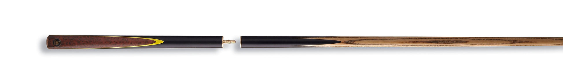 The Cannon React is a 57” ¾ jointed cue, crafted from sports grade Ash to provide excellent performance at outstanding value. The cue features a simulated hand-spliced Ebony butt, decorated with a Thuya Burr front splice and yellow veneer decal for a distinctive look.