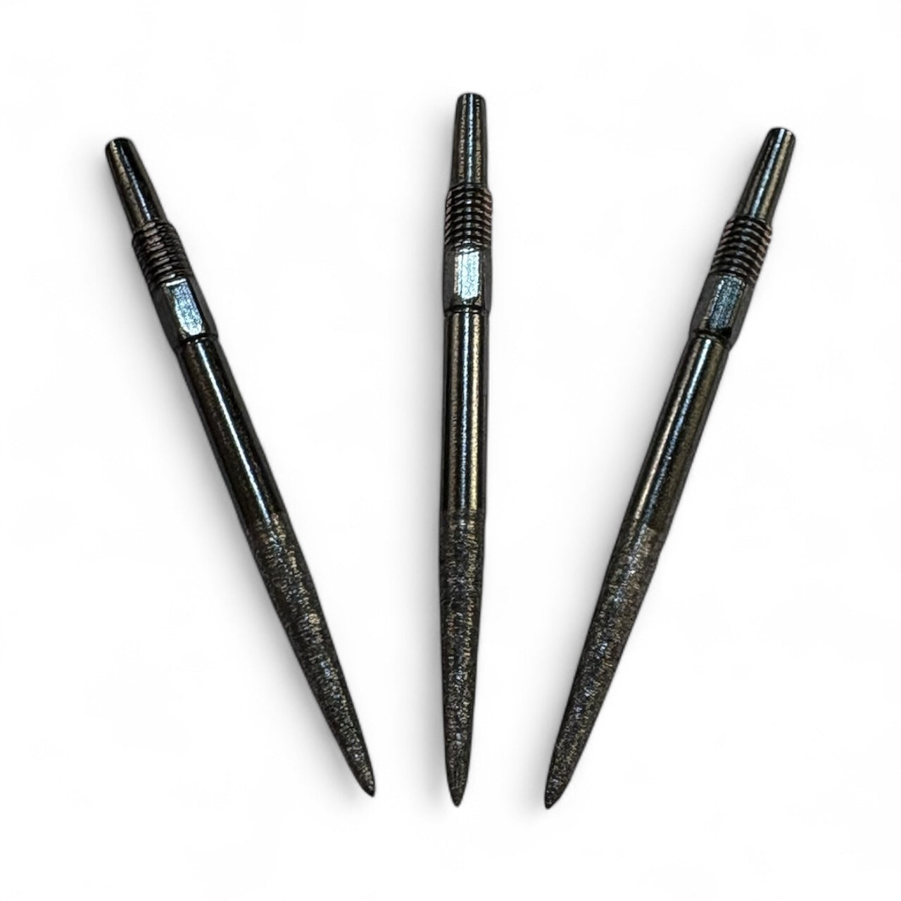 The Jurassic Raptor Screw-In Points are engineered for players who value control and subtlety. Featuring a 50% Raptor grip pattern on the lower half and a smooth upper section, these points strike the perfect balance between precision hold and effortless release. The satin finish complements any dart setup, delivering a refined, minimalist look without compromising on performance.