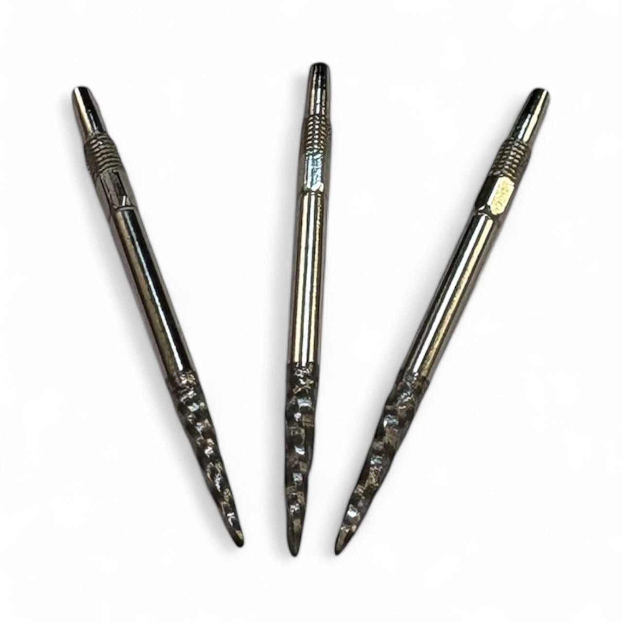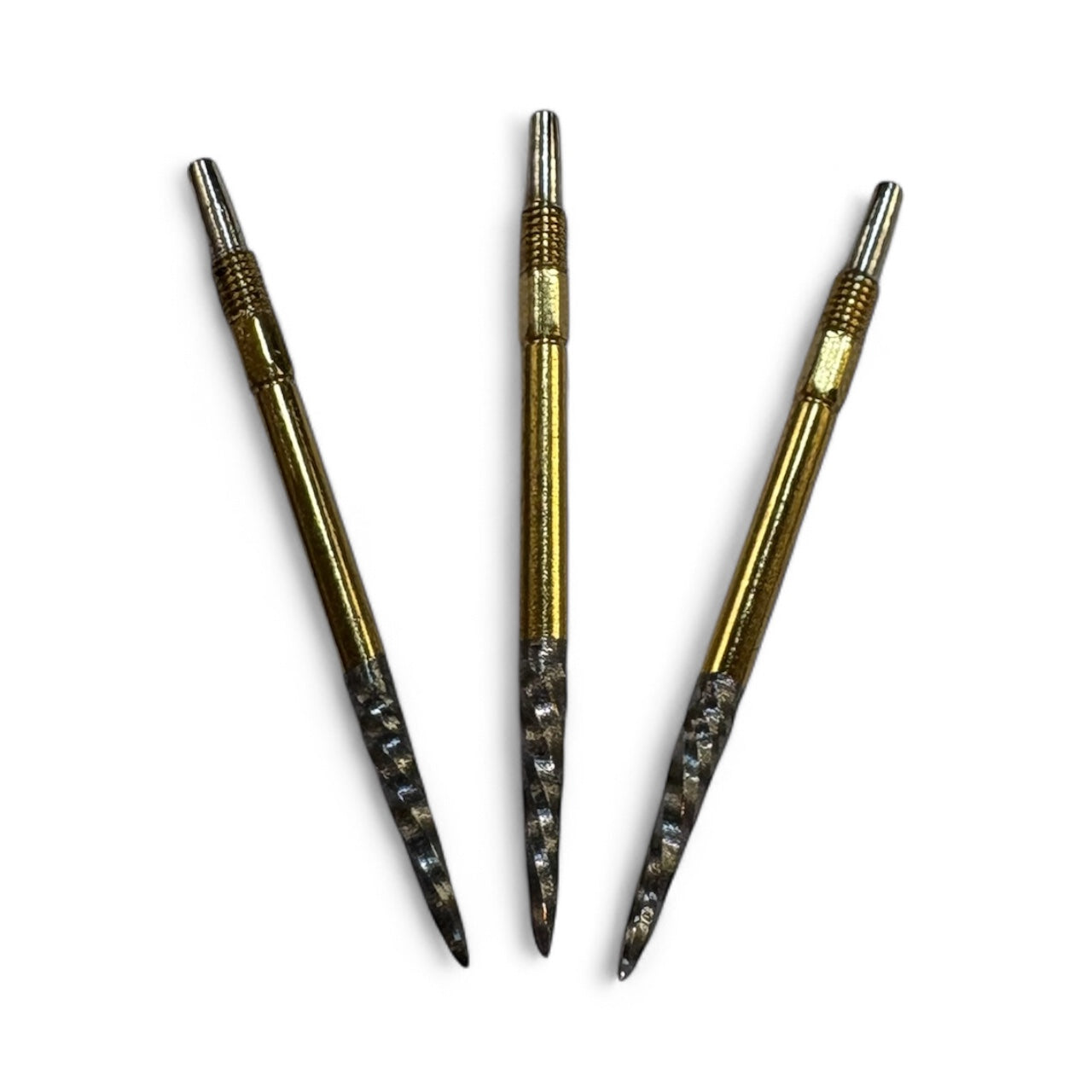 The Jurassic Spino Screw-In Points engineered for players who demand ultimate grip and pinpoint accuracy. Featuring a 50% Spino pattern, the lower half of each point is precision-cut with deep, spiral grooves for exceptional board hold and stability, while the smooth upper section allows for a clean, effortless release.