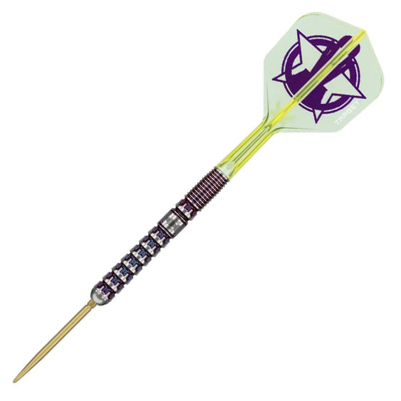 Built on Luke’s trusted Target Generation 1 barrel, this special edition is engineered for ultimate performance. The precision-milled barrel features Target’s exclusive Pixel Grip technology, delivering superior control and accuracy with every throw. Its sleek 6.5mm profile allows for tighter groupings, making it easier to hit maximum scores. Completing the championship design, the barrels are finished with signature purple detailing and laser-etched with ‘The Nuke’ logo and his World Championship Trophy—an iconic tribute to a record-breaking career.