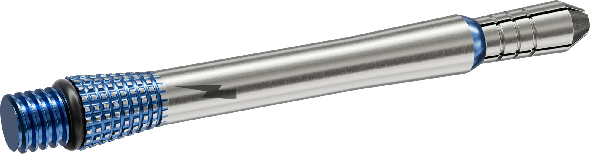 Crafted from lightweight aluminium with a durable blue titanium nitride coating, the shaft, with precision-engineered design at the rear provides a secure grip and consistent flight path. Equipped with a 2BA universal thread, these shafts can be paired with any 2BA thread dart barrel.