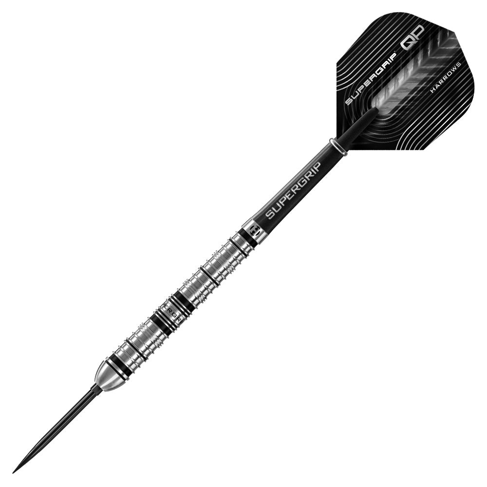Each barrel is match weighed to a precise +/- 0.05g tolerance, guaranteeing flawless consistency and reliability with every throw. The natural tungsten finish is complemented by sleek, matte black rings and the iconic Supergrip branding, delivering a look that is as refined as it is functional on the oche.